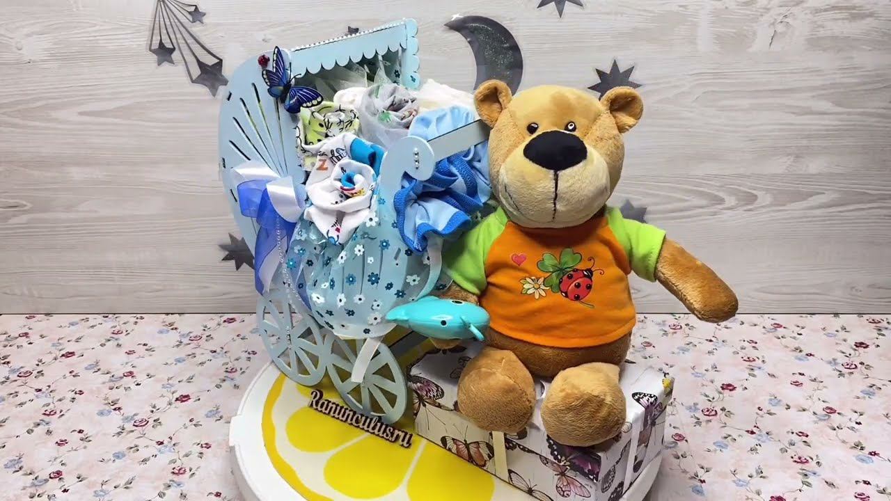 Букет из детской одежды в коляске