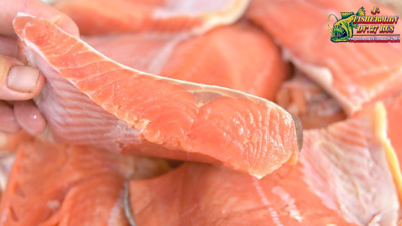 Малосольный лосось, кета, горбуша, сухого посола, кусочками в масле, длительного хранения.