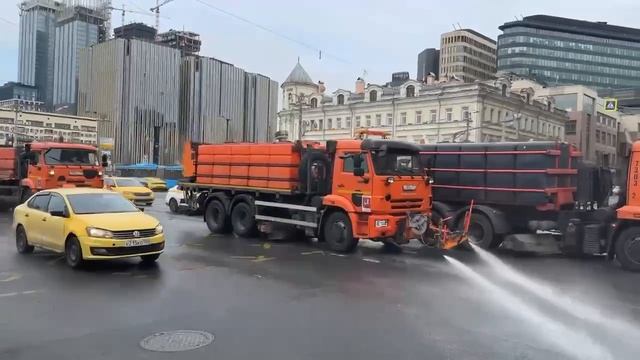 Первая в этом году промывка дорог и тротуаров с шампунем после зимы началась в Москве.