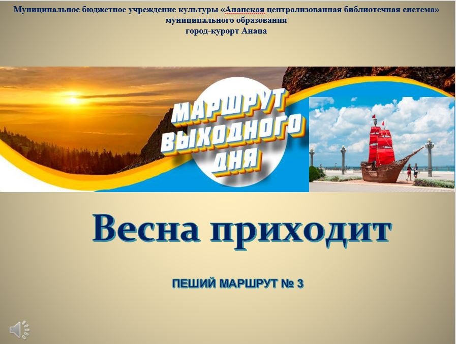 Готовы поразиться, насколько теплой, дружелюбной и прекрасной может быть Анапа? С нашей командой краеведов вы исследуете окрестности города от современной Летней эстрады до старинного почтового отделения, пройдете дорогами героев русско-турецкой войны, склоните голову у памятника атаману А. Бескровному, восхититесь ночной, полной жизни Анапой! Готовы? Приглашаем Вас в очередное путешествие – пеший городской маршрут №3. Напоминаем, что нами разработаны: 1. Пеший городской маршрут №1 http://anapaved.ucoz.net/news/rubrika... 2. Пеший городской маршрут №2 http://anapaved.ucoz.net/news/cb_kr_r... Мы позаботимся о том, чтобы вы покорили Анапу — а Анапа покорил вас! Сектор краеведения Центральной библиотеки МБУК «Анапская ЦБС»