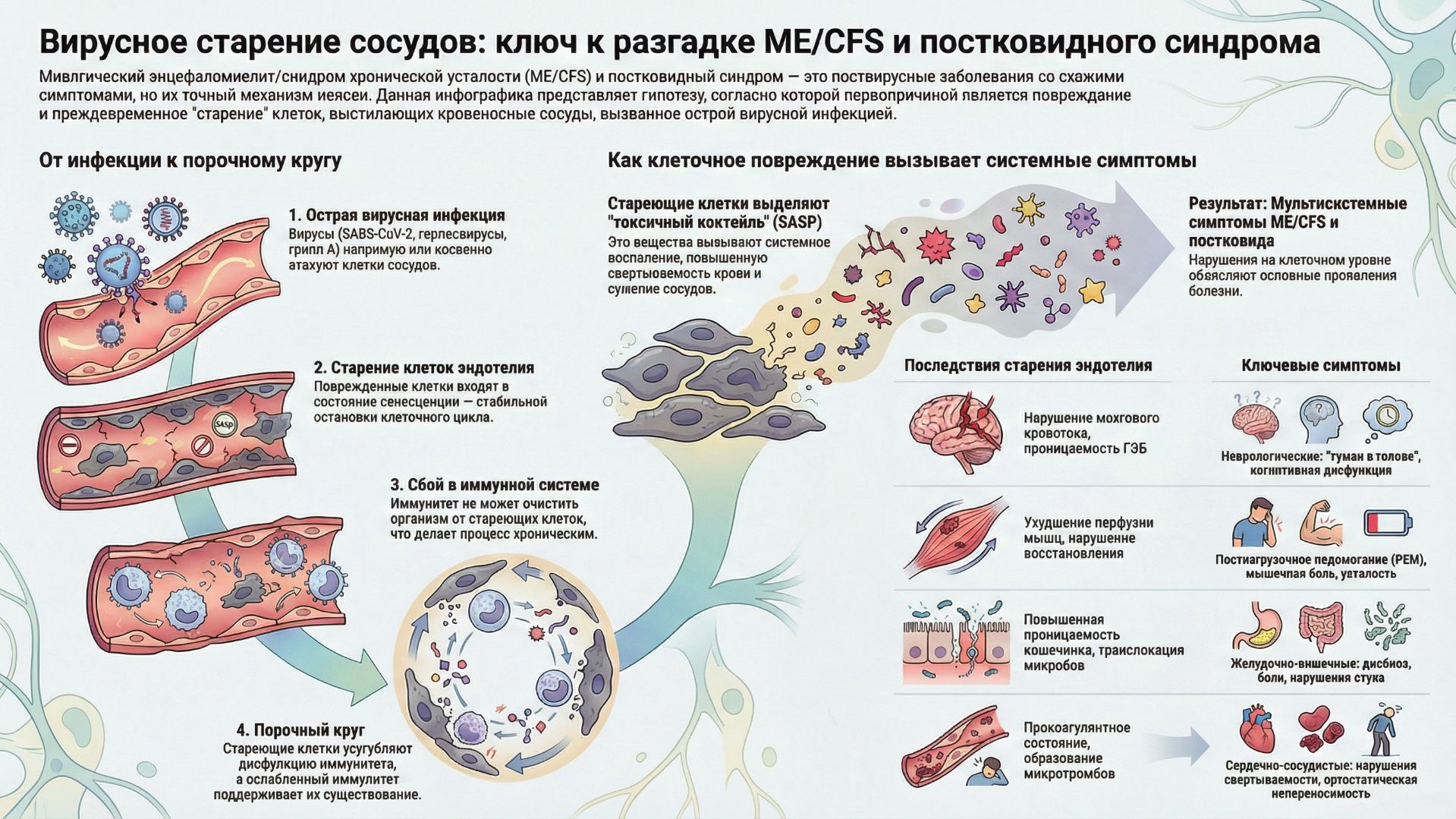 Вирус-индуцированное старение эндотелия как причина и движущий фактор развития синдрома хронической усталости и длительного COVID-19: опосредовано дисфункцией иммунной системы Cell Death & Disease volume 17, Article number: 16 (2026) Published: 09 January 2026 https://www.nature.com/articles/s41419-025-08162-2 Старение эндотелия как ключевой механизм развития ME/CFS и Long COVID https://dzen.ru/a/aXJIFAd-jwRfKT6x