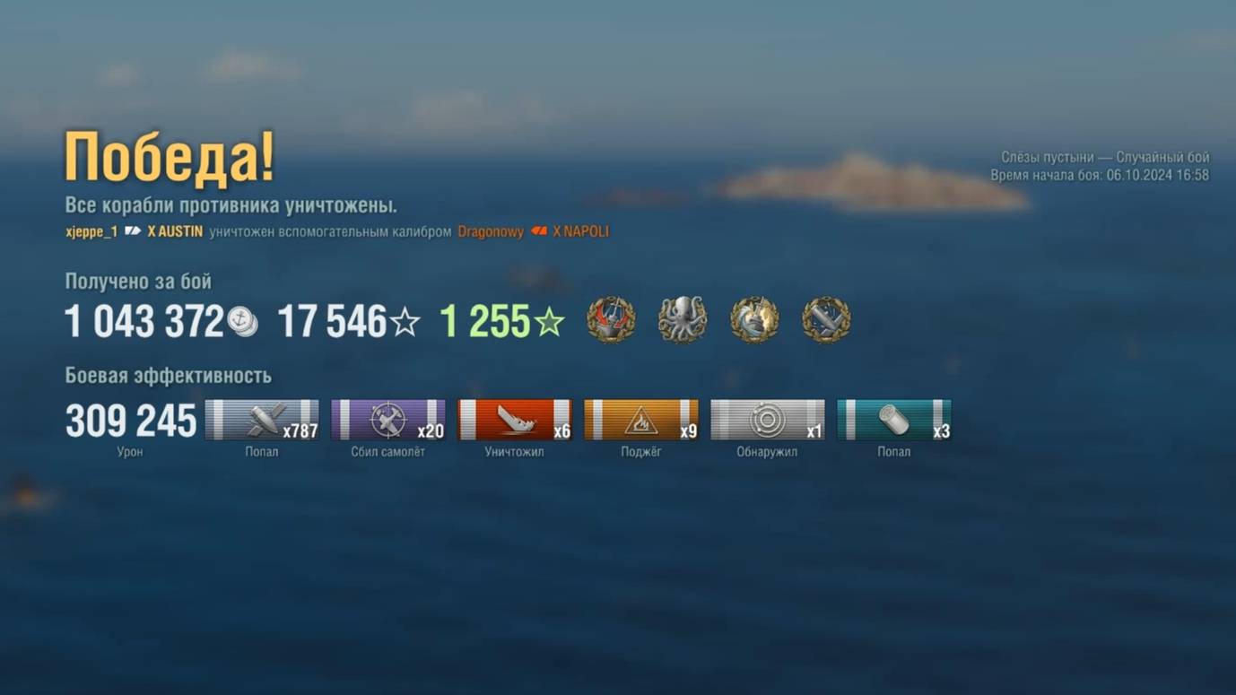 Крейсер Austin : +309к урона 6 фрагов на карте Слёзы пустыни - World of Warships