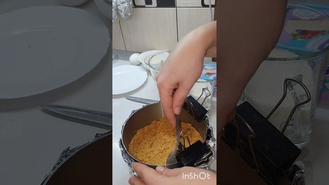 200 гр печенья 100 гр растопленного слив.масла 150 гр жирных сливок 33% 3 яйца 150 гр сахара ванилин или ванильный сахар по вкусу 600 гр сливочного сыра
