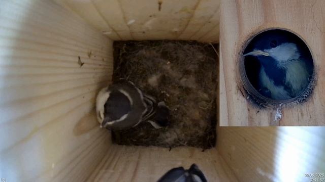 Птенцы большой синицы покидают родное гнездо.