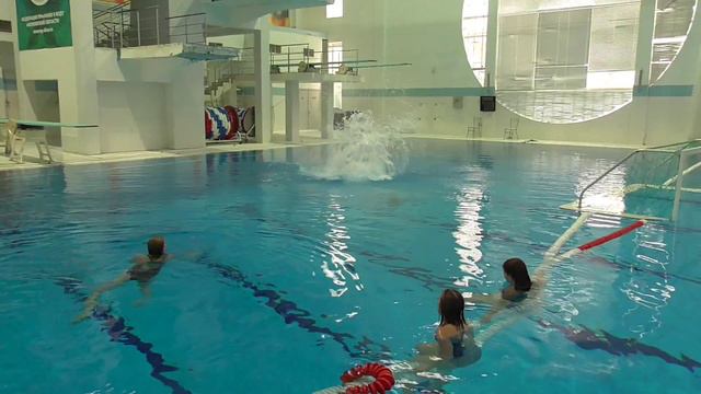 Прыжок с вышки 7 метров в воду во Дворце Водных Видов Спорта г. Руза.