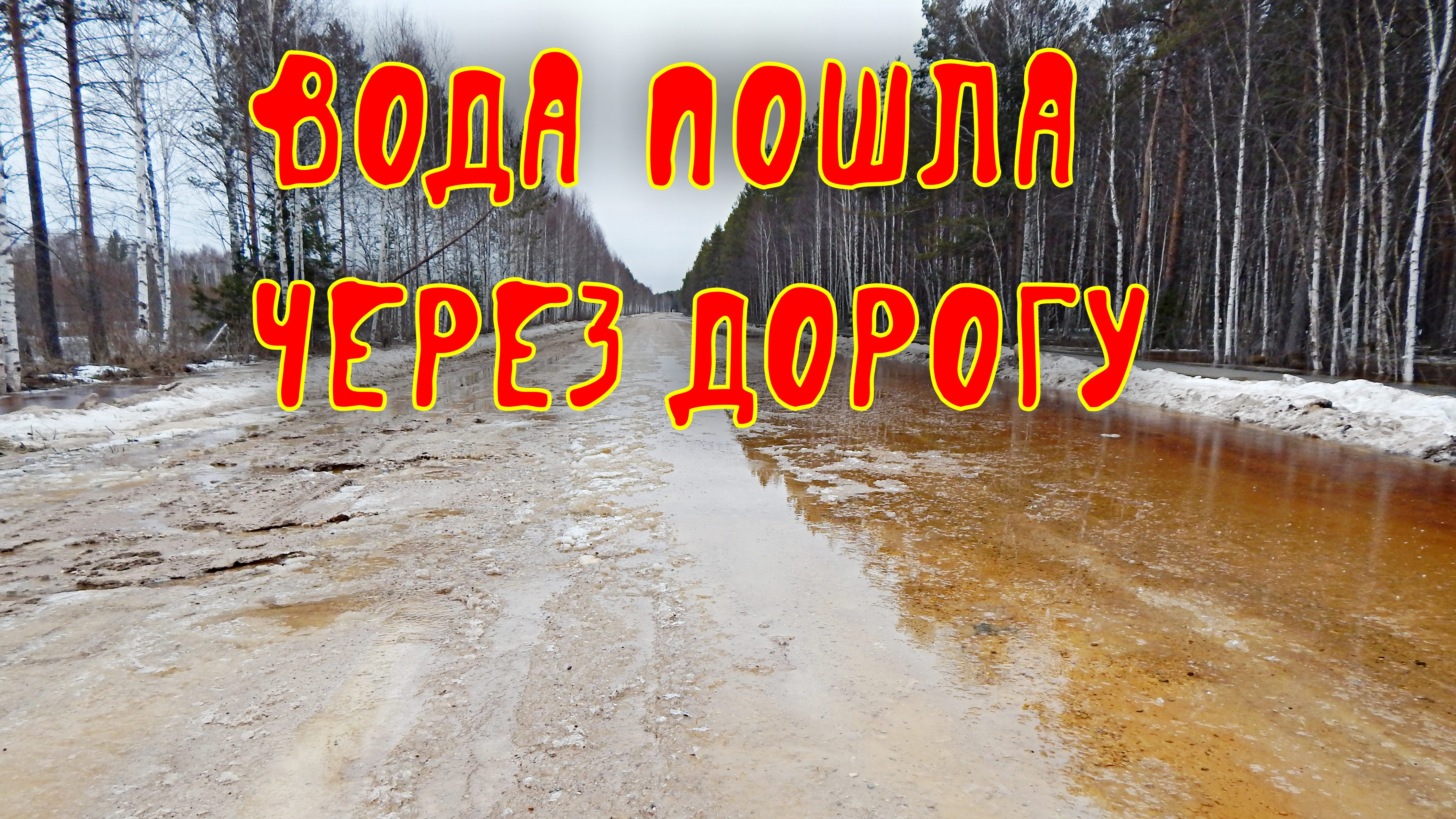 Наводнение. Вода прибывает быстро. Подтапливает дорогу Шалакуша - Лепша. Впереди по прогнозу дожди, а в лесу и на болоте ещё много снега. Скоро на легковых машинах будет не проехать. Весна.