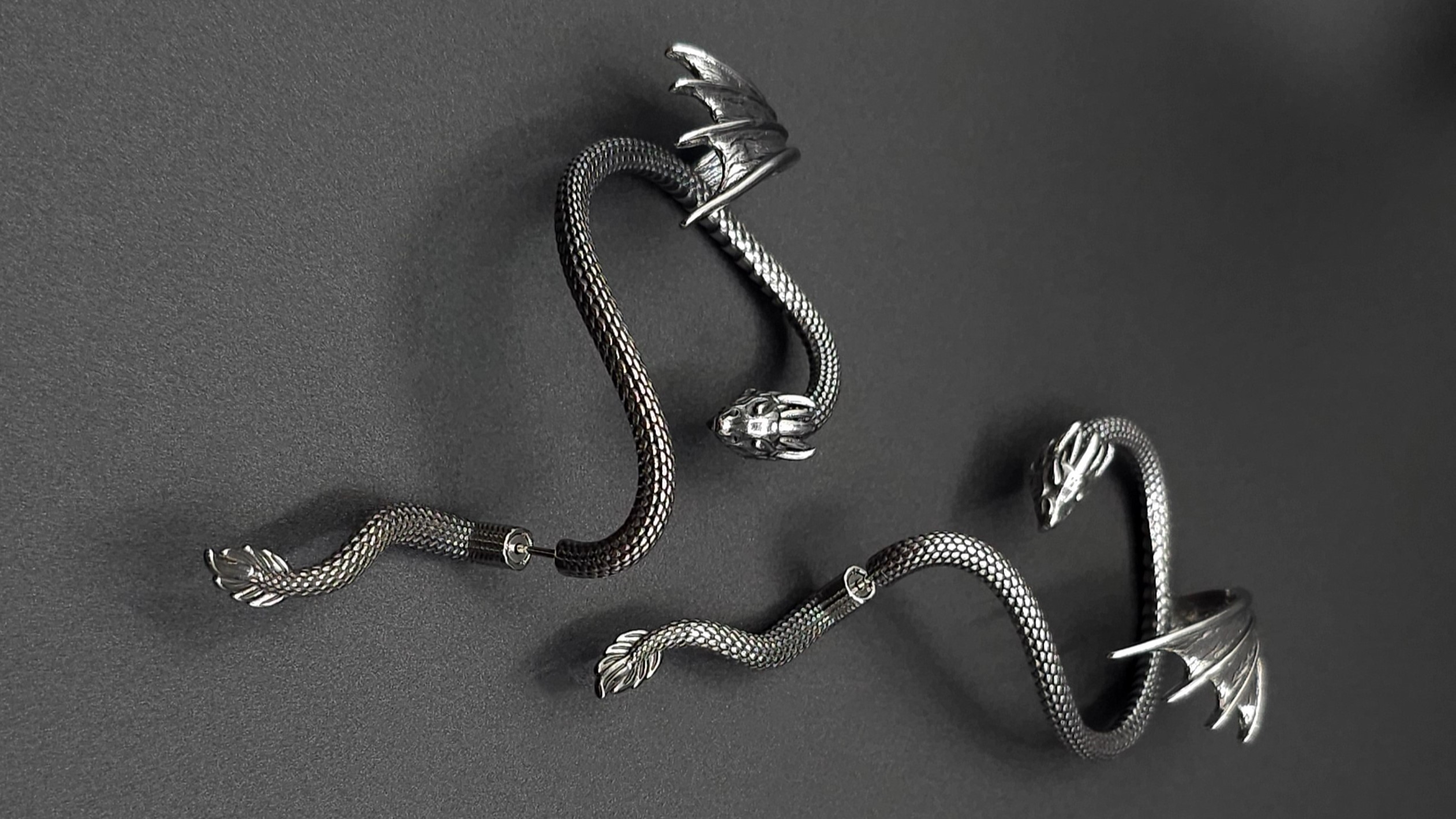 Дизайнерская серьга каффа "Изящный дракон" от Starfallshop для правого либо левого уха доступна для заказа на Wildberries по арт. 208804732 и на Ozon по арт. 1400557153. Авторские стильные серьги драконы дополнят Ваш образ и подчеркнут индивидуальность. Серьга каффа требует прокола: верхняя часть каффы ложится на хрящик - прокол сверху не нужен, но необходим в мочке уха - для фиксации моносерьги. Вид замка - пусет (гвоздик).