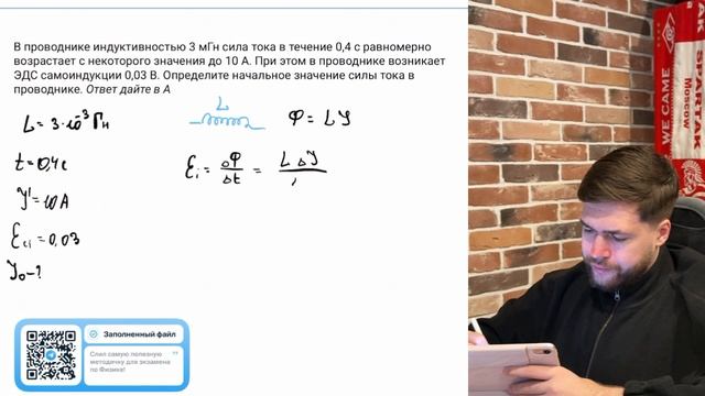 В проводнике индуктивностью 3 мГн сила тока в течение 0,4 с равномерно возрастает с - №37611