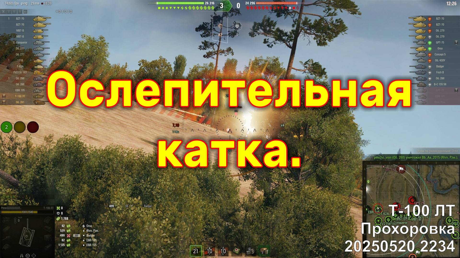 Ослепительная катка. Т-100 ЛТ. Прохоровка. 20250520 2234.