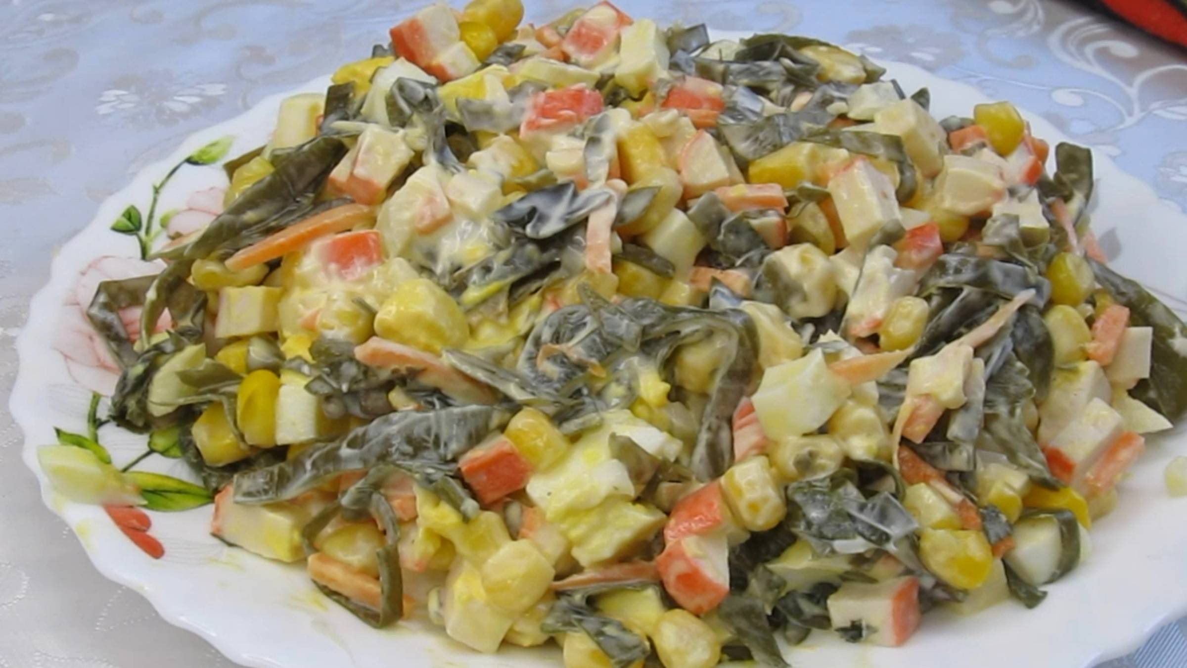 Этот салат нужно приготовить и попробовать. Он не для разнообразия, он действительно вкусный. Особенно, если любите морскую капусту. Рецепт: Морская капуста - 150 г Яйца - 2 шт Крабовые палочки - 100г Лук - 1 шт (небольшая луковица) Кукуруза - 3-4 ст.л Майонез - 3 -4 ст.л