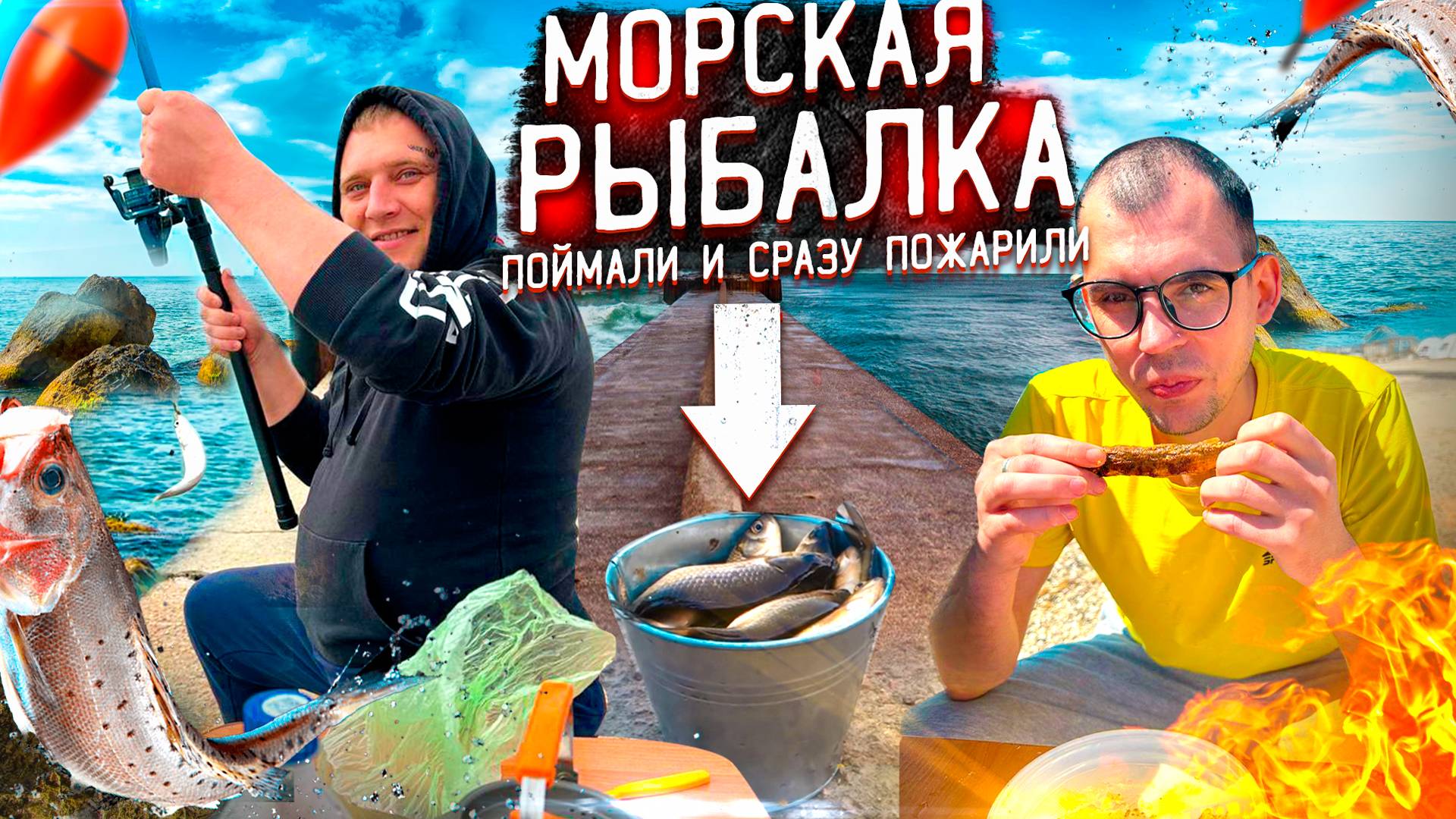 МОРСКАЯ РЫБАЛКА С ПИРСА В ЕВПАТОРИИ! ПОЙМАЛИ И СРАЗУ ПОЖАРИЛИ! КЕФАЛИ ОЧЕНЬ МНОГО!