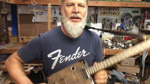 This Cigar Box Guitar was made from a Battalion "EDGE" cigar box. The box was sanded and stained and resanded so the grains really stand out. Everything is "chrome" - chrome humbuckers, chrome corners, chrome tuners, chrome tuner bushings, chrome switch, chrome strap button, chrome hinge, chrome finishing washers, chrome sound hole grommets, chrome eyelets and chrome screws. The saddle is a hand carved piece of walnut stained with weathered oak. The entire instrument has been stained with dark walnut. The fretboard is a LOWES yardstick fretted with medium nickel frets that have been leveled, dressed and polished. Also features a jumbo zero fret for the nut and large top side solder burns for position markers. The action is set up to accommodate both finger style and slide playing. PATREON: https://www.patreon.com/PuckettCigarBoxGuitar T-Shirts: teespring.com/puckett-cigar-box-guitar Inquiries: PuckettCBG@gmail.com Website: www.DelPuckettCBG.com Tips: www.paypal.me/delpuckett Church: https://atheycreek.com