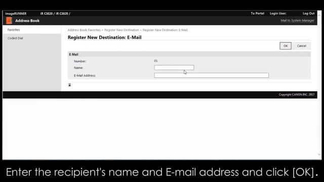 iR C3020: Registering Send Destination