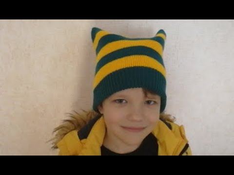 Шапка кошка на любой машине. Можно связать и спицами по этой же выкройке