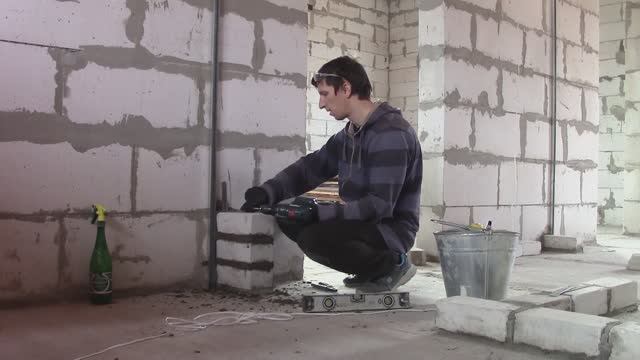 Внутренние перегородки в доме - это стены которые возводятся уже после постройки дома, они не являеются капитальными стенами их можно при желании снести илли доработать. Я решил что перегородки для ванной лучше будет, если я сделаю кирпичными. Кирпич обладает меньшей звукопроницаемостью. Кирпичными они будут для первого этажа и гипсокартонные перегородки на втором этаже. (Там кирпичные не возможны из за деревянных перекрытий. Работать с кирпичом при укладке стен, мне понравилось, несмотря на то, что сами работы сильно изматывают и очень медленно продвигаются. Можео так же выбрать в качестве материала газосиликатные блоки. Я так и хотел сначала и даже клей для них закупил, но потом все таки поменял решение в пользу кирпича. По поводу гидроизоляции, я слегка ошибся. Надо было её проложить под стены. Временные метки видео 0:26 Чем обусловлен мой выбор материала для перегородок. 1:25 Расположения перегородок в доме и проект комнат. 2:39 Работы по разметке линий перегородок, замеры, монтаж профилей и подготовка комнаты, 5:13 Раствора для кладки кирпича. приготовление. 5:48 Кладка кирпича в стены 7:46 Размеры дверных проёмов 9:56 Связь и крепление перегородки к несущим стенам дома при помощи монтажных пластин и уголков. 19:36 Уголки из металла в качестве перемычек 20:10 Пришла бродячая кошка 24:00 Перемычки для проёмов дверей 30:50 Перегородки закончены. Финальные вид готовых стен