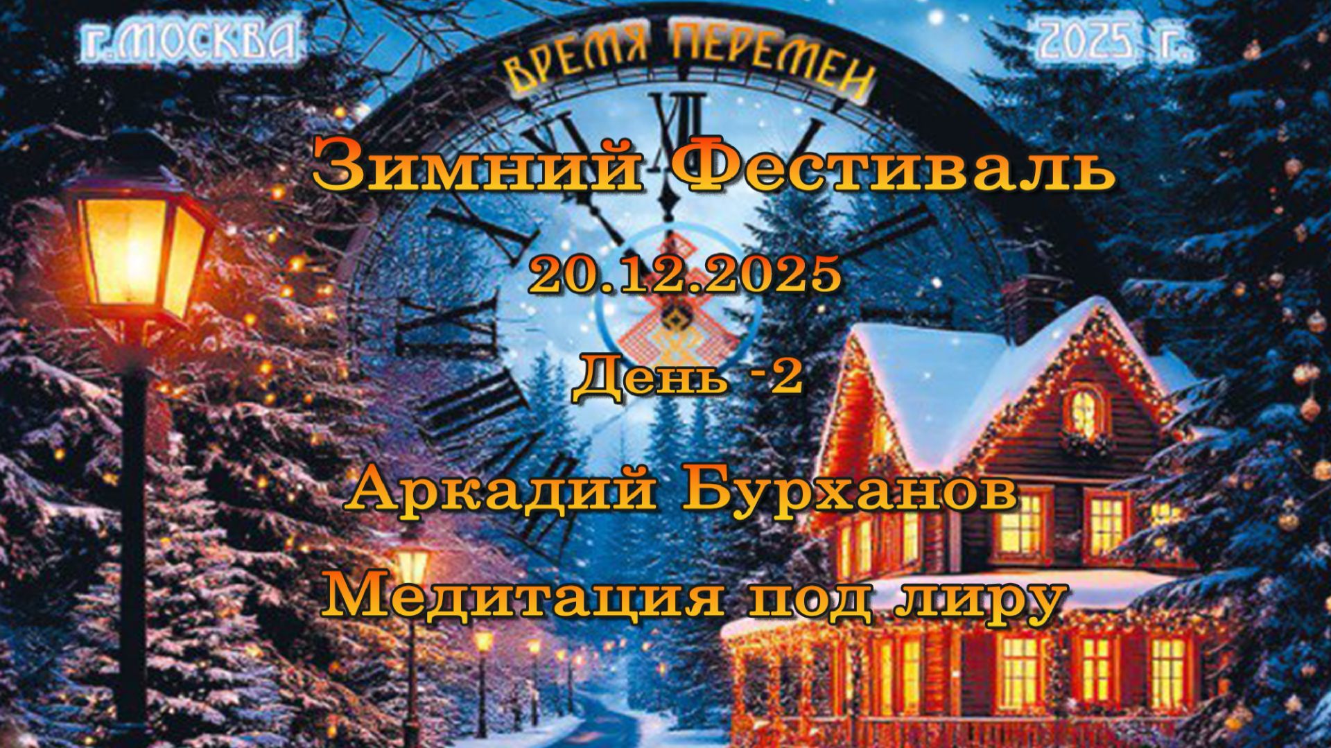 Зимний фестиваль. Аркадий Бурханов. Медитация под лиру. 20.12.2025 • Уважаемые соратники и гости нашего канала! Для выражения вашей искренней Благодарности за нашу деятельность и желания поддержать Прямые Эфиры - приводим номер нашей карты: 2202 2083 8186 3696 (СберБанк, МИР). • Наши контакты: - Cайт: http://mpmv.ru , http://мы-славяне-мы-вместе.рф , http://mrmv.ru , http://мырусымывместе.рф , http://русо.рус - Группа "Метафизика для жизни" в ВК: https://vk.com/i.bereginya , https://vk.com/tokareva_dlya_novichkov - Видео "Метафизика для жизни ЗОЛОТОЙ ВЕК. Надежда Токарева" (в RUTUBE): https://rutube.ru/channel/23742857 - Видео "Токарева Надежда. Метафизика для жизни." (в YouTube): www.youtube.com/@metafizika_dlya_zhizni - Прямые Эфиры "МЕТАФИЗИКА ДЛЯ ЖИЗНИ (Прямой Эфир)" (в RUTUBE): https://rutube.ru/channel/41039190 - Прямые Эфиры "Надежда Токарева. Большой семинар. Прямой Эфир" (в YouTube): www.youtube.com/@metaruss - "Золотой Век" (в RUTUBE): https://rutube.ru/channel/23660249 - "Золотой Век" (в YouTube): www.youtube.com/@ЗолотойВек-к2е