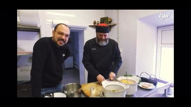 Шеф-повар Олег Ольхов показывает как приготовить тюрю на белом квасе. кухня Данилова монастыря г.Москвы , 2018 г #тюря #русскаякухня #монастырскаякухня #квас #шеф-повар