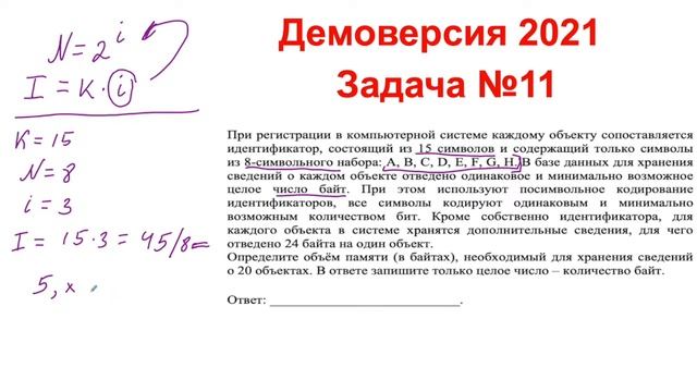 Решение задачи №11. Демоверсия ЕГЭ по информатике 2021.