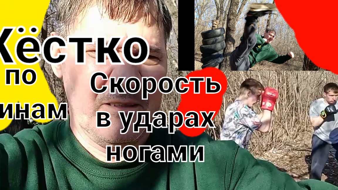 Такой скорости ударов ногами можно добиться,только тренируясь до пота. Парни бьют по шинам.