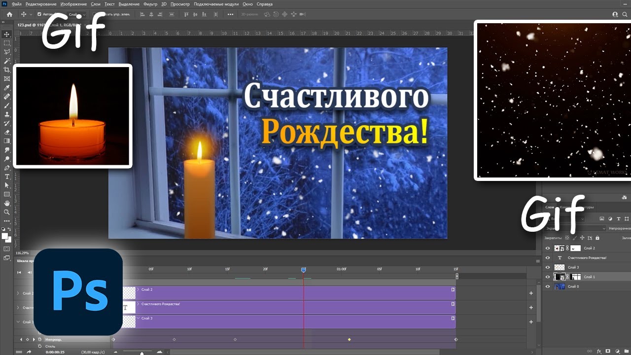 Как добавить несколько гифок на одну картинку в фотошопе