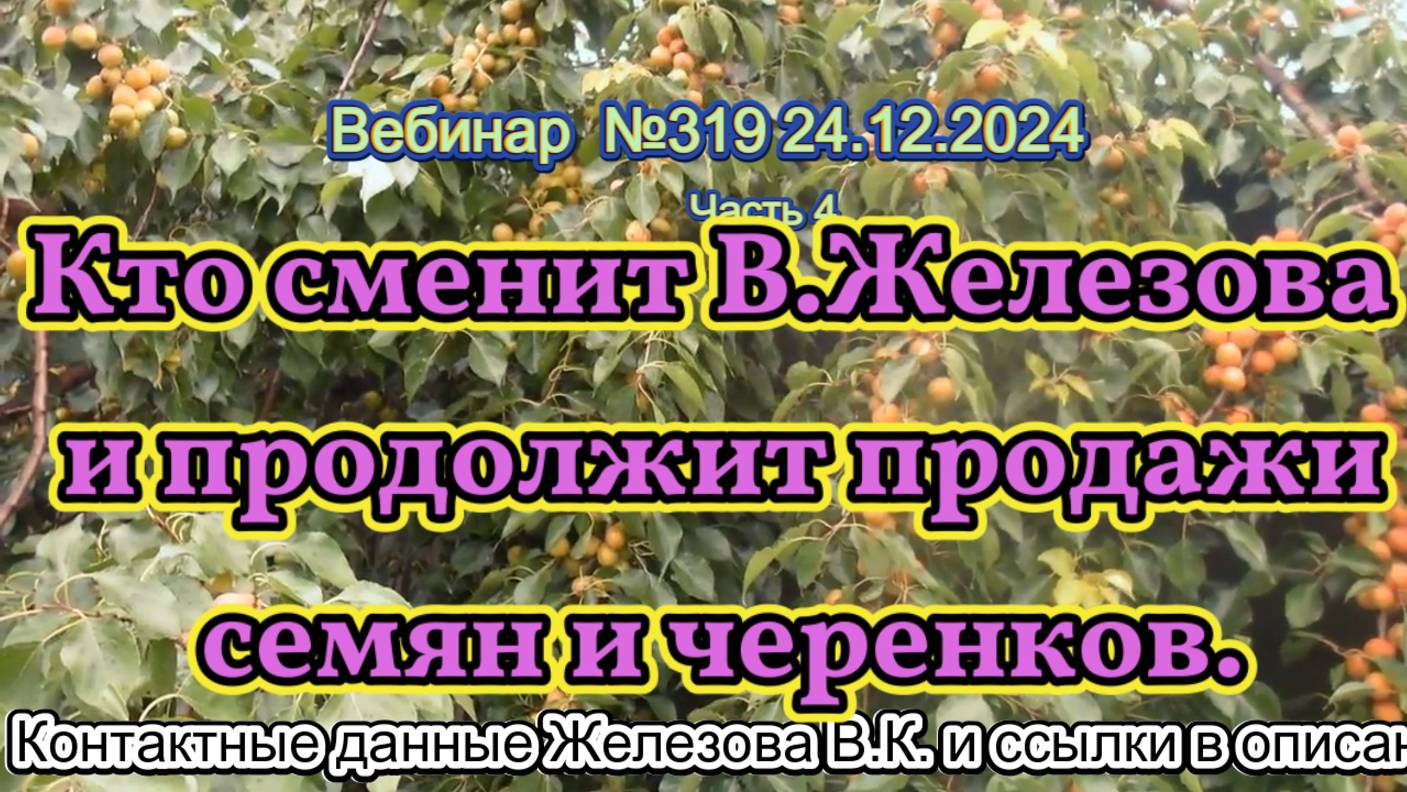 Железов Валерий. Вебинар 319. ч.4. Кто сменит В.Железова и продолжит продажи семян и черенков.