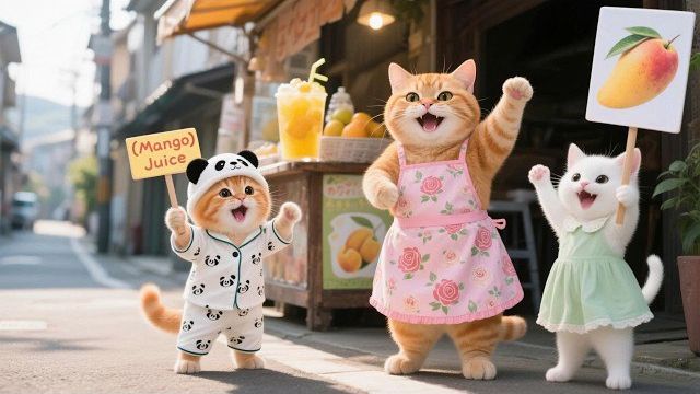 Джинджер и его друг пытаются помочь кошке-маме продать манговые продукты Смешные видео с кошками