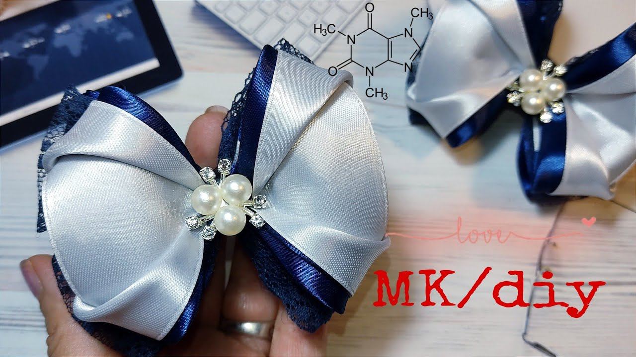 Необычно объёмные бантики,сине-белые бантики#бантикившколу #diy #handmade #канзаши #творчество
