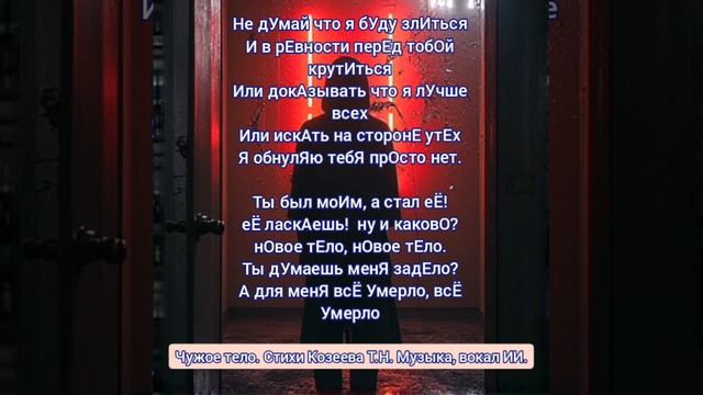 Песня "чужое тело" создана в тандеме с ИИ. Стихи Татьяна Козеева. Музыка, вокал ИИ.