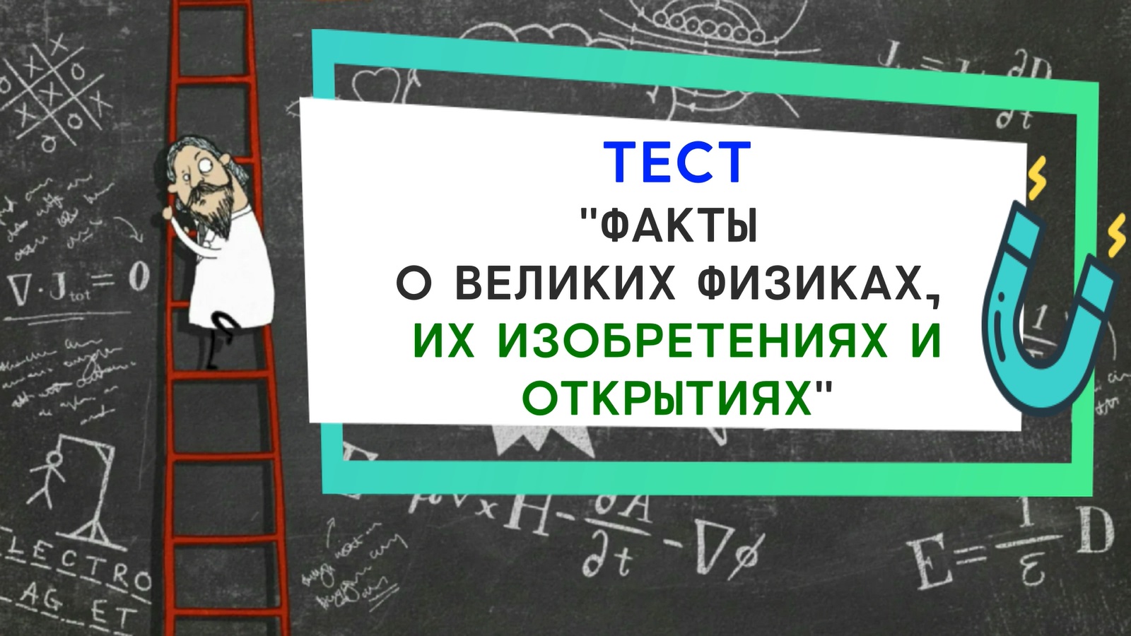 За каждым открытием в физике стоит человек и его напряженный труд. Узнайте больше о великих физиках в этом тесте! ***************************************************************************** 1. Для ответа на каждый вопрос вам дается по 10 секунд 2. По истечении 10 секунд будет дан правильный ответ. Желаем удачи! #тест#аттестациямозга#эрудиция#кругозор#знания#образование#iq#школа#учеба#логика#егэ#урок#онлайн тестирование