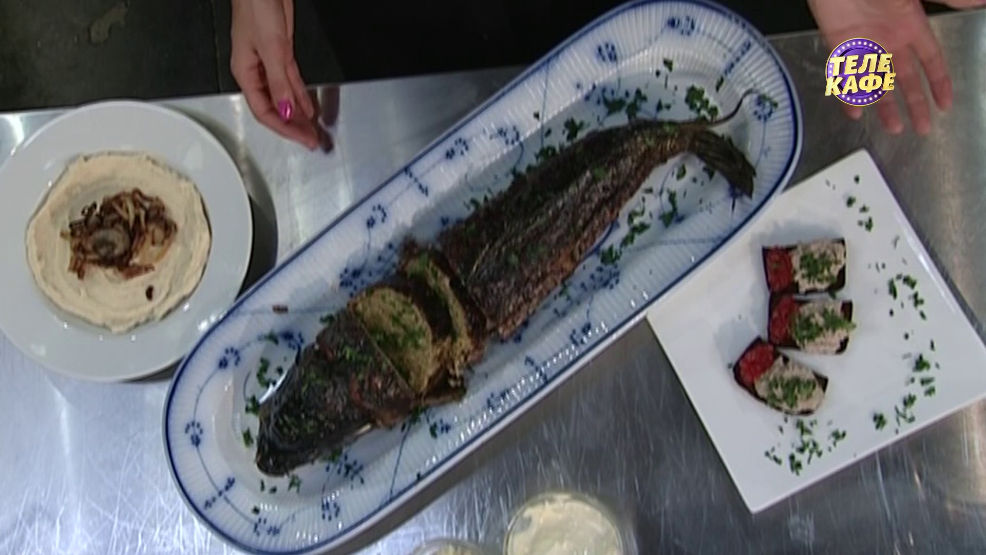 Фаршированный карп «Гефилте фиш» / Свекольное желе / Хумус из белой фасоли / Форшмак из сельди