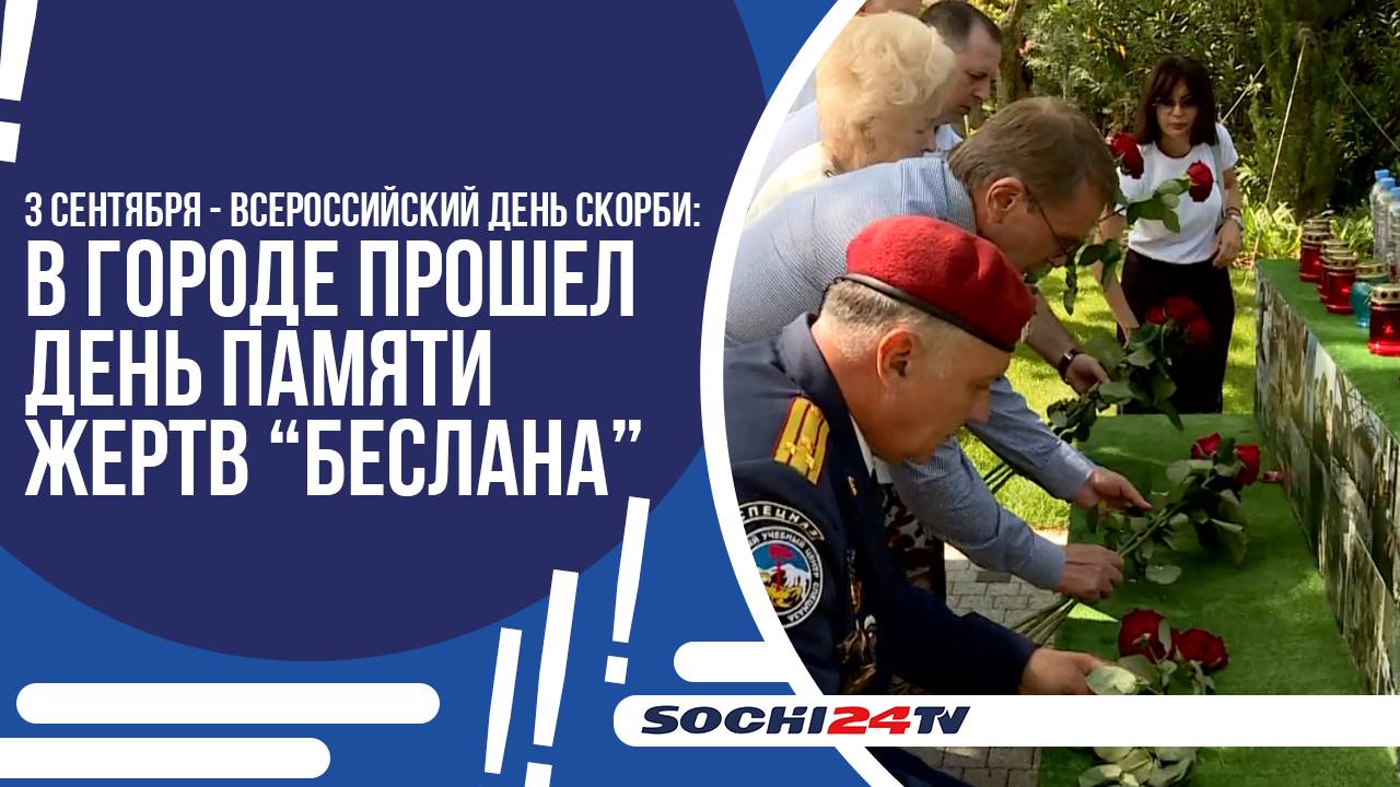 Вечная память погибшим. 1 сентября, ровно 20 лет назад в Беслане террористы взяли в заложники учеников, их родителей и педагогов школы №1. В память о трагедии на территории всего города состоялась акция памяти. #сочи24 #новости #сочи #новостисочи Телефон редакции: +7 (988) 235 10 20 (WhatsApp/Telegram) Почта: sochi24.tv@yandex.ru Сайт: https://sochi24.tv Одноклассники: https://ok.ru/sochi24 Яндекс Дзэн: https://zen.yandex.ru/sochi ВК: https://vk.com/sochi24tv Телеграм: https://t.me/sochi24tv Тик Ток: https://www.tiktok.com/@sochi24.tv