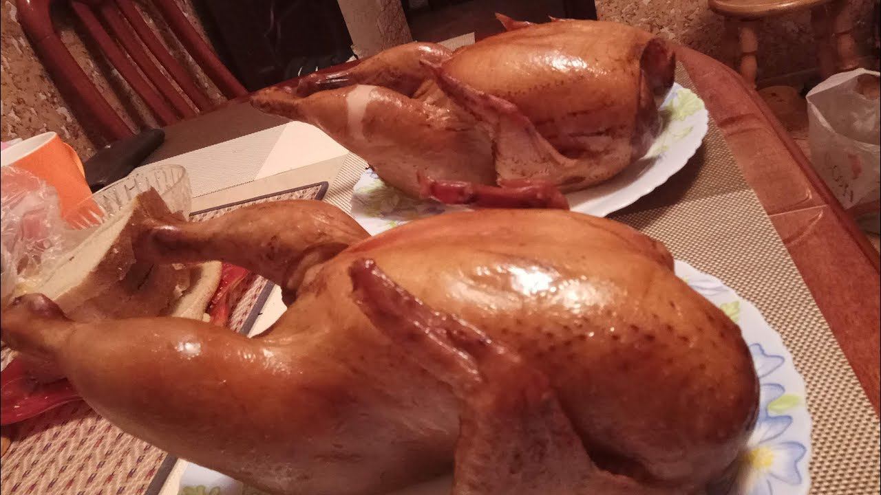 Куры горячего копчения в самодельной деревянной коптильне