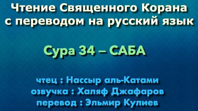 Кира'ат/Чтение с озвучкой Корана Чтец: Насир аль-Катами Озвучка: Халяф Джафаров Перевод: Эльмир Кулиев Источник YouTube канал: " Священный Коран "