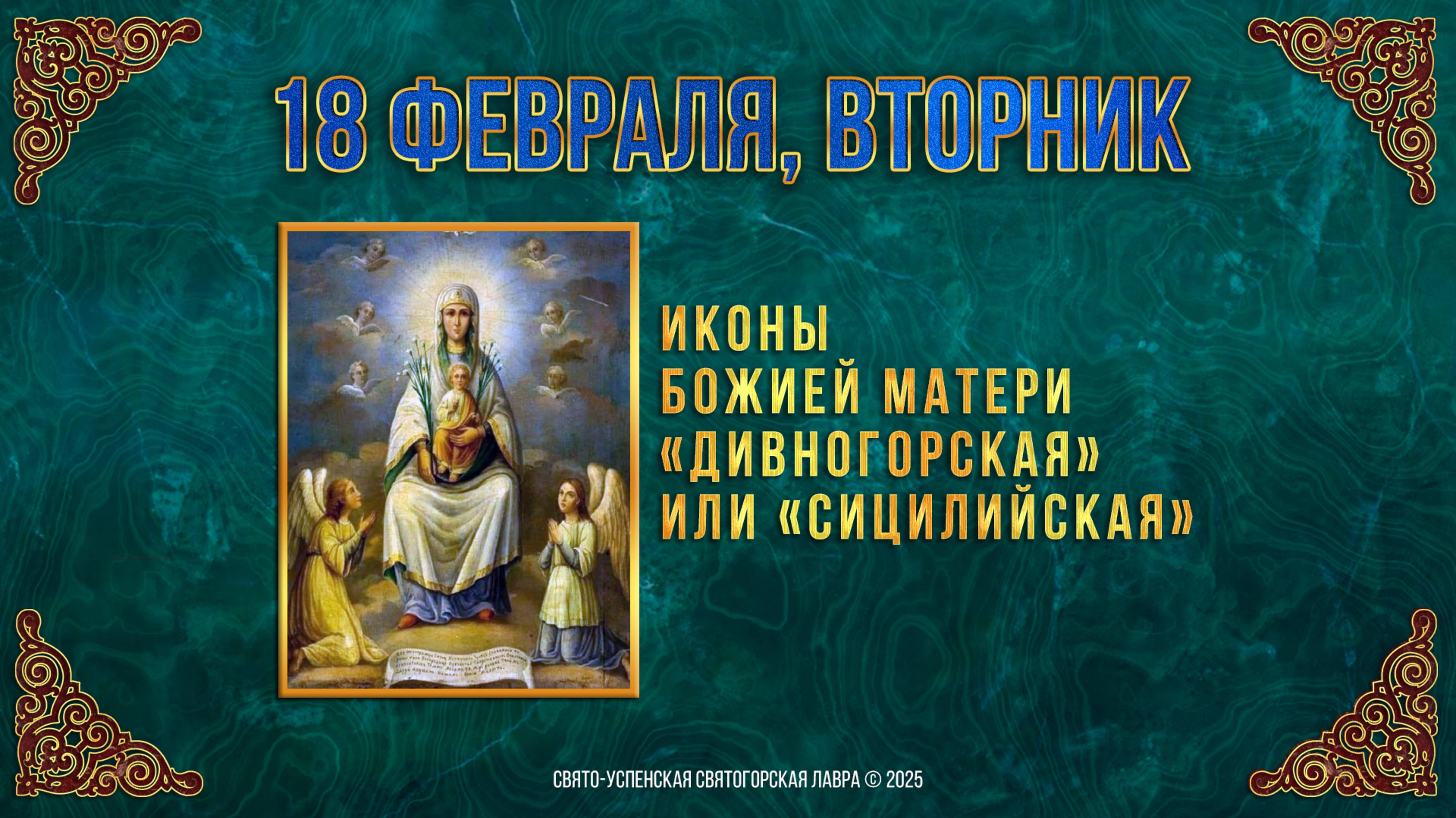 Иконы Божией Матери «Дивногорская», или «Сицилийская». 18 февраля 2025 г. Календарь