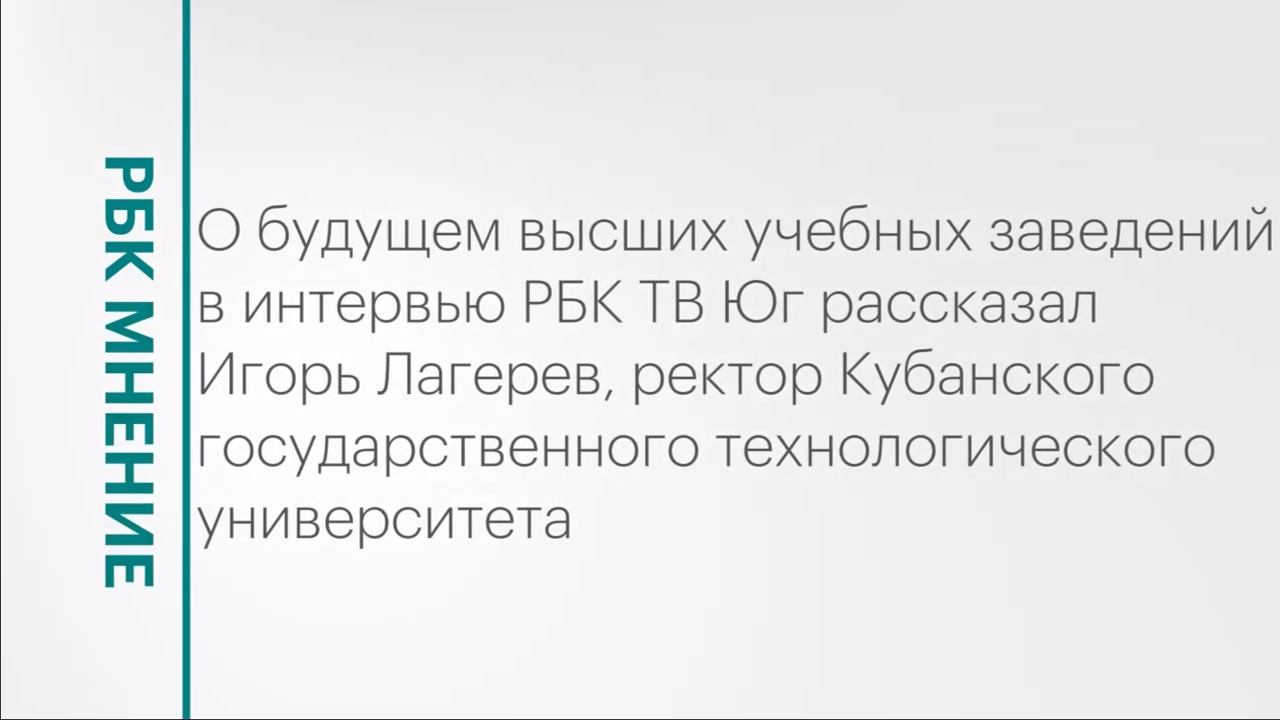 Какими будут вузы будущего, в эфире РБК ТВ Юг рассказал Игорь Лагерев, ректор Кубанского государственного технологического университета. Подписывайтесь на нас в социальных сетях: ВКонтакте: https://vk.com/rbcyug Telegram: https://t.me/rbc_krasnodar, https://t.me/rbcrostov, https://t.me/rbc_kavkaz Подпишитесь на канал РБК Юг, чтобы смотреть новые выпуски первыми!