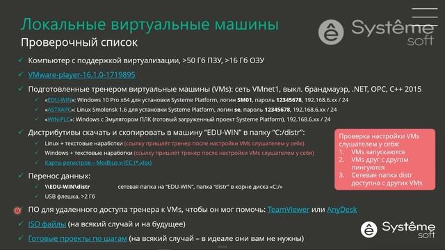 Из этого подробного видео Вы узнаете: Что именно нужно скачать для подготовки к практическим занятиям по программе "SEP-11-el". Рассказывает Константин Воскресенский. Проверочный список и ссылки для настройки локальных машин (VMs) для занятий Systeme Platform по программе SEP-11-el доступен по ссылке: https://workspace.beelinecloud.ru/systeme/s/qACqZPngZRrkCyp Узнайте больше о Systeme Electric: ► Сайт: https://systeme.ru/ ► VK: https://vk.com/systemeelectric ► Telegram: https://t.me/systemeelectric_official ► Одноклассники: https://ok.ru/group/70000000047930