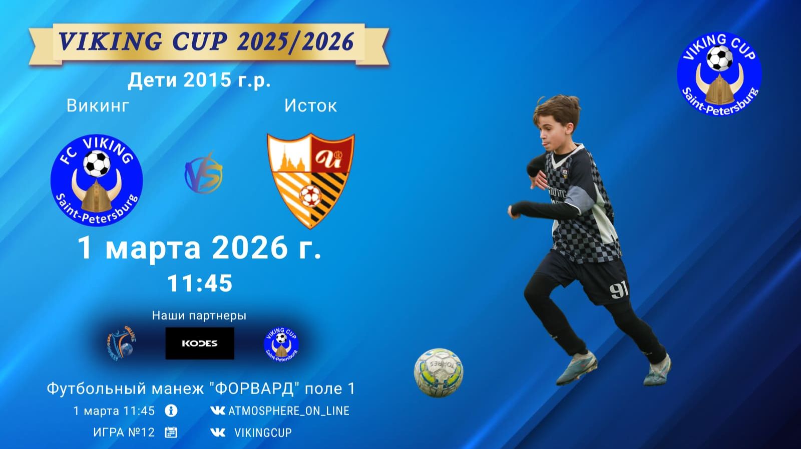 VIKING CUP среди команд 2015 г.р. (U11), Поле 1 1 марта 2026 САНКТ-ПЕТЕРБУРГ, ФЦ "Форвард" Викинг-Исток/VIKING CUP, Игра №12, 01-03-2026 11:45