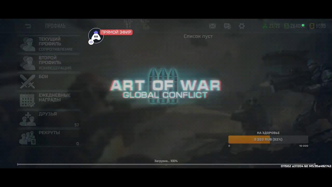 Поддержка автора по ссылке: https://www.donationalerts.com/r/rincks райффазен банк 2200 3005 1695 5281 телеграм группа для подписчиков https://t.me/art_of_war_3_rincks_sopra Продлить стрим:300 руб Смена фракции:200 руб Тренировка:300 руб 2х2: по совести Покажи кач: миллион рублей Закончить стрим:1000 руб Так же можно заказать челлендж. тоесть дать стримеру задание за определенную сумму. Например: сыграть только авиацией или вообще без неё,ну и так далее. Ссылка на игру: Долго искал настоящую стратежку на телефон, как старкрафт. Наконец нашел Art of War 3! Очень крутая игра! Вот ссылка, качай, тебе понравится: https://redirect.appmetrica.yandex.com/serve/169878688668608468?recruiter_id=1111515909