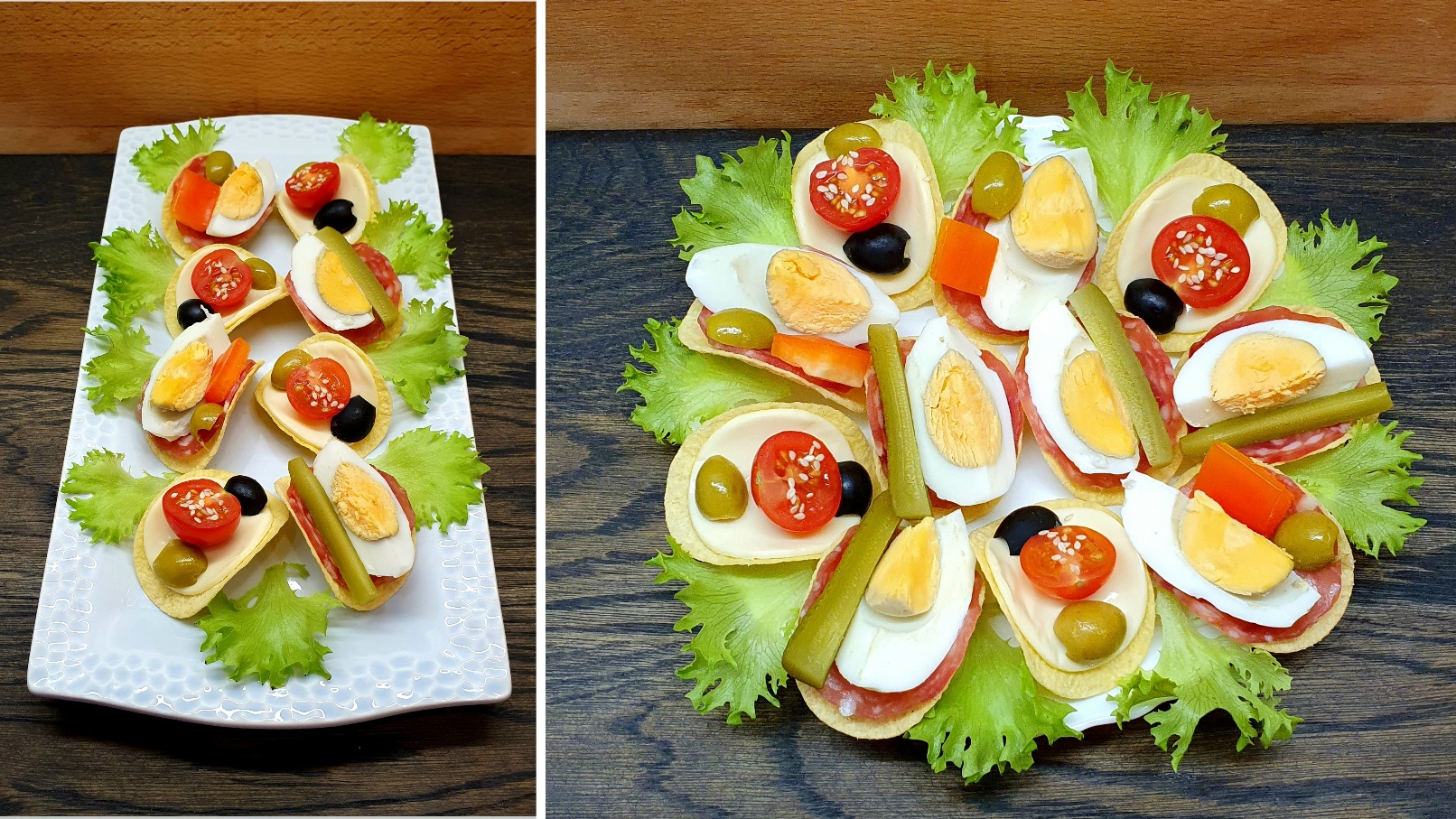 Канапе - закуска на праздничный стол на чипсах (3 вида)