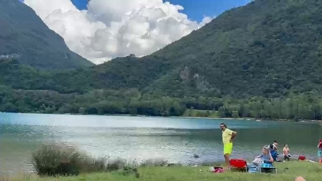 Прохлада на озере в летнюю жару в горах Италии