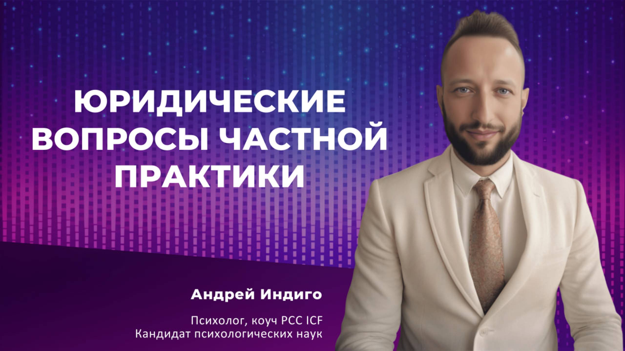 Ссылка на семинар юридические вопросы частной практики - https://andreyindigo.com/yuridicheskiyevoprosychastnoypraktiki Семинары Андрея Индиго: http://t.me/Indigopeople_assistant Записаться на личную диагностическую сессию: https://andreyindigo.com Закрытая группа "Практика на миллион" для психологов и коучей: https://t.me/+hlCZO6w-hBoyZTYy Подписывайтесь на мои социальные сети: Телеграм: https://t.me/AndreyIndigo INST: https://www.instagram.com/andrey.indigo/ ВК: https://vk.com/andrey.indigo