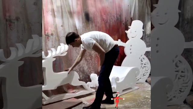 Сани деда мороза. олени, снеговики из пенопласта