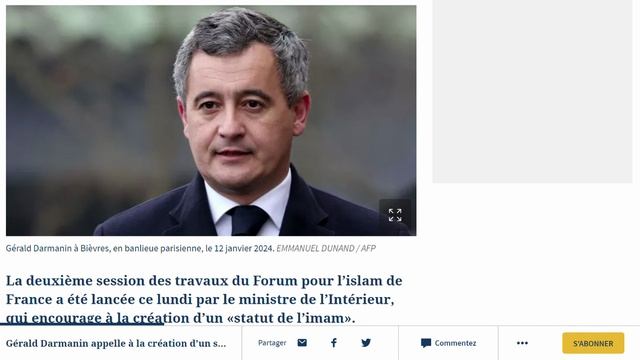 Gérald Darmanin appelle à la création d’un statut de l'imam