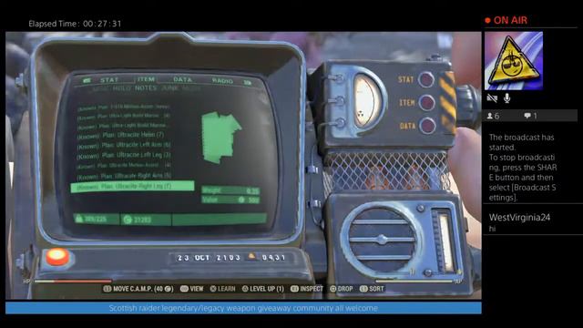 Hi all hope yous are in good health,Welcome to my youtube channel where I upload Fallout 76 legendary giveaway content and do queen and xp hunting,I'm a military veteran and I suffer from ptsd but my gaming gives me a break from my anxiety and other stuff,I try and give back to the community of fallout by dropping the legendary things I collect my forum is Scottish B1rhf and you can join me on scottishraider