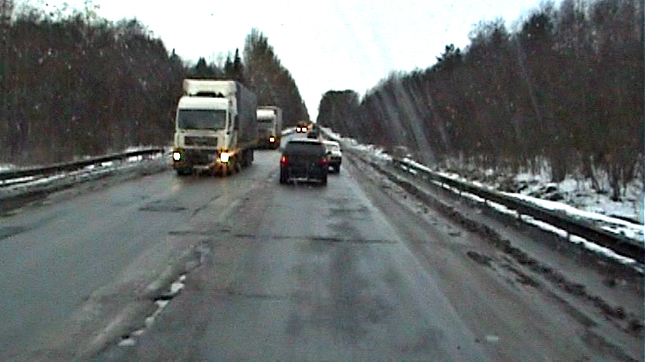 Один из наиболее убитых участков трассы М-10 «Россия» в нулевые годы. Дальнобой ПРО. Март 2009. Дальнобойщик сидит выше, поэтому видит больше... ↗ ДАЛЬНОБОЙНЫЙ СЛОВАРЬ https://www.slovar.dalnoboi.pro/