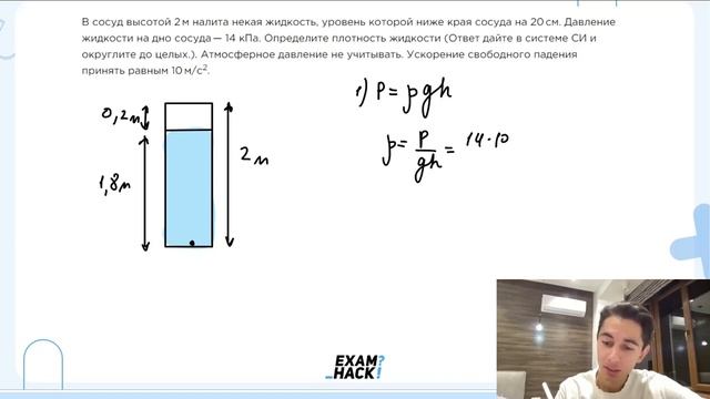 В сосуд высотой 2 м налита некая жидкость, уровень которой ниже края сосуда на 20 см - №23055