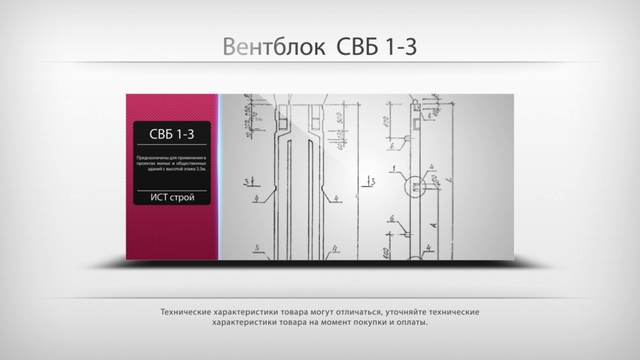 http://ist-stroy.ru/katalog-zhbi/obemnyie-elementyi-domostroeniya/ventilyaczionnyie-bloki-bv-bvd-svb/cvb1-3/ Вентблок СВБ 1-3 предназначен для устройства вентиляции в зданиях с высотой этажа 3300 мм.