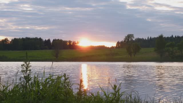 Над озером спускается закат...
