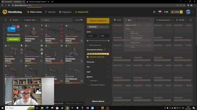 Ссылка с бонусом: https://skinsmonkey.com/ru/r/garant Промокод: GARANT Всем привет, у микрофона Garant. Сегодня я расскажу вам о способе заработка на сайте SkinsMonkey. Я расскажу вам о том, как и где находить скины кс с дорогими наклейками без переплат. Связь со мной: VK: https://vk.com/garantcis E-Mail: garantcsgo@yandex.ru