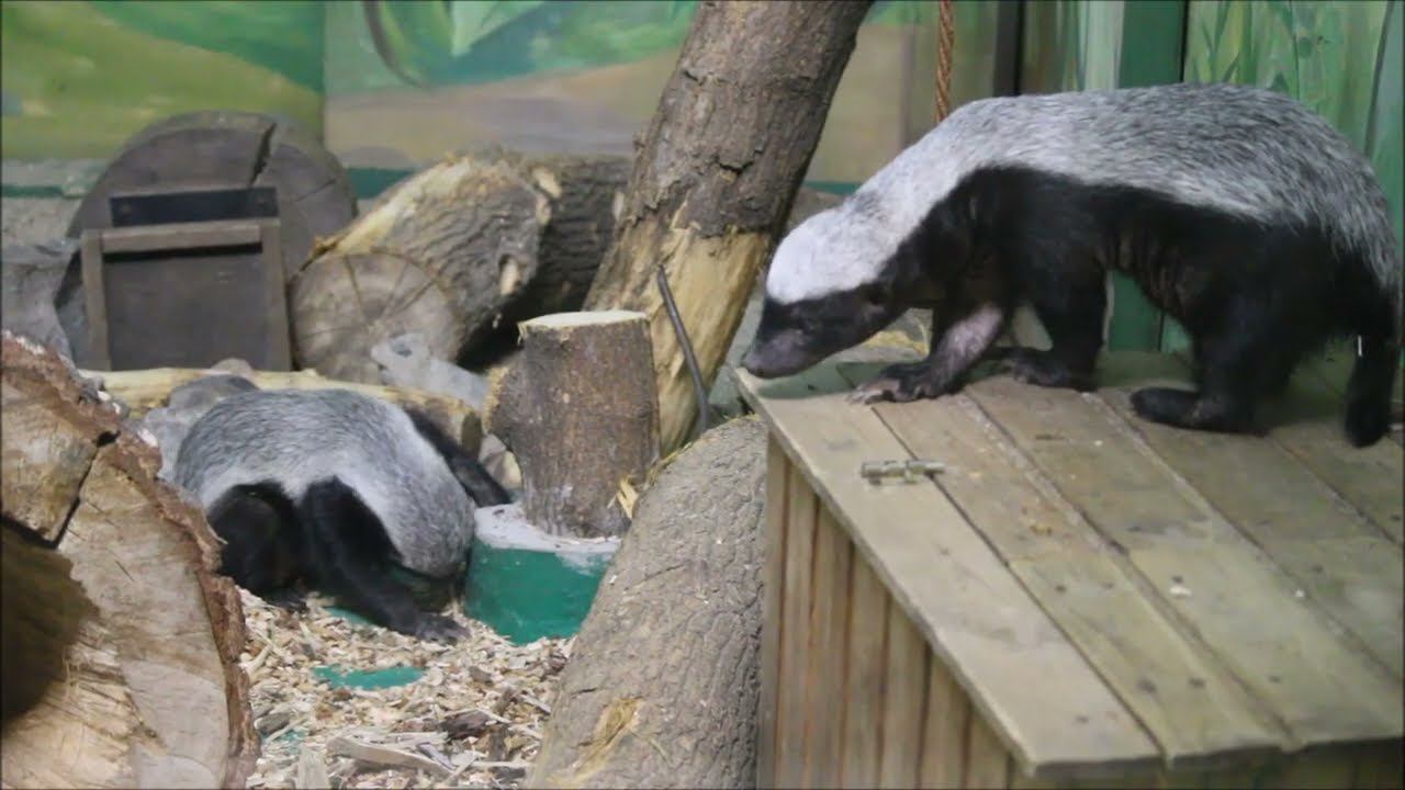Новосибирский зоопарк получил из Чехии двух медоедов в 2020 году. Медоед – это хищник семейства куницеобразных. Он внешне похож на всем известного барсука, но меньше размерами и контрастно окрашен. Обитают медоеды на территории Африки и Азии. Видовое название объясняется любовью этих животных к мёду. Но питаются они не только этим сладким лакомством, их рацион чрезвычайно разнообразен. Медоед известен своим бесстрашием. Несмотря на свои небольшие размеры, он готов сразиться с такими крупными хищниками как лев и леопард. Еще одним его качеством является устойчивость к змеиному яду: медоед ест змей и может выжить после укуса кобры и гадюки. Некоторые называют медоеда южным родственником нашей росомахи. 23 ноября 2021 года у наших медоедов родился первый малыш! Это был первый случай в России. 22 декабря 2022 года пара снова порадовала нас потомством!